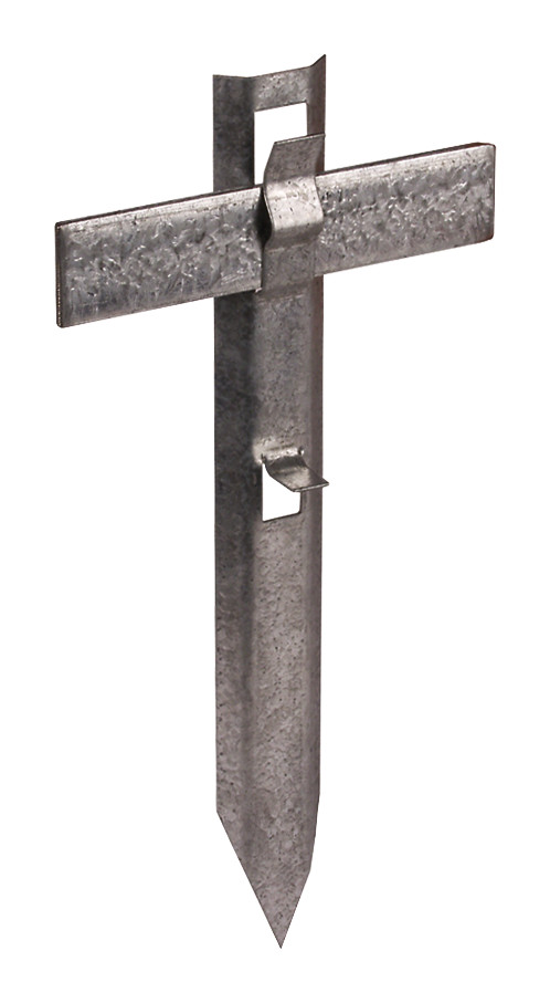 Abstandshalter zum Verlegen von Erdungsleitungen in der Fundamentsohle, mit Sicherungsnase gegen Lösen des Leiters. Ausführung gerade.