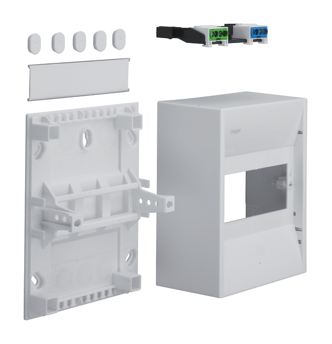 Miniverteiler, gamma, 6 Modul, IP30, 1xPE, 1xN. Miniverteiler als Kleinstverteiler aus Kunststoff zum Einbau von (Keine Vorschläge) nach Maßnorm DIN 43 880 als Berührungsschutzabdeckung nach BGV A2 für Geräte bis 63 A, 400 V /50 Hz, Schutzart IP30. Zur Aufputz Montage mit 46 mm Geräteschlitz, serienmäßig plombierbar.| Hersteller / Marke | HAGER |