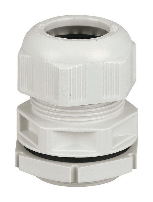 Kabelverschraubung, Leitungseinführung=M20, Bohrungsdurchmesser=20.5mm, Verwendung Kabel NYM/NYY, 4-adrig=H05VV-F4x2.5/3x4, NYM 5x1.5/5x2.5qmm , Schutzart IP68 bis 5 bar (30min), Polyamid, halogenfrei, RAL 7035, mit Gegenmutter und integrierter Zugentlastung, Brandklasse V2 nach UL94,