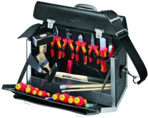 Lehrlingskoffer aus Rindleder, Vorderwand mit Aluwinkeln, abschließbar. Bestückt mit: Kombizange, Abisolierzange, Flachrundzange, Seitenschneider, 2 Kabelmesser, PUK – Säge, je 1 Schraubendreher 2,5 x 80, 3,5 x 100, 5,5 x 125, 6,5 x 150. je 1 Kreuzschlitz PH 1 und PH 2 und je 1 Pozidriv PZ 1 und PZ 2. Spannungsprüfer, Maurermeißel, Elektriker-Meißel, Schlosserhammer 300 g, Fäustel 1.000 g, Zimmermannsbleistift, Malerspachtel 40 mm, Wasserpinsel und Gipsmulde 125 x 90.| Hersteller / Marke | KNIPEX |