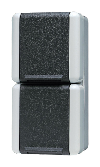SCHUKO-Steckdose, 2fach, 16 A, 250 V ~, verdrahtet, 2 Leitungseinführungen, Abmessungen (B x H x T): 75 x 151 x 58 mm, für senkrechte Montage
