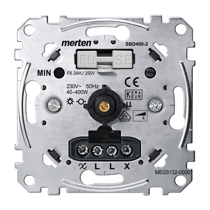 Für Glühlampen und 230 V-Halogenlampen. (Phasenanschnitt). Mit Druck-Wechselschalter. Zu komplettieren mit: Zentralplatte mit Drehknopf System M MEG5250-03xx/-04xx/-06xx Zentralplatte mit transparenter Abdeckung und Drehknopf M-Creativ MEG5250-3500. Zentralplatte mit Drehknopf System Design MEG5250-60xx, System Fläche MEG5250-40xx/-41xx/-42xx Hinweis: Informationen zum Thema Dimmen von LED Leuchtmittelnerhalten Sie im Internet unter Merten Dimmertest. http://www.merten.de/Dimmer-Test.dimmertest.0.html. Ausführung: 40-400 W.| Manufacturer / Brand | MERTEN |