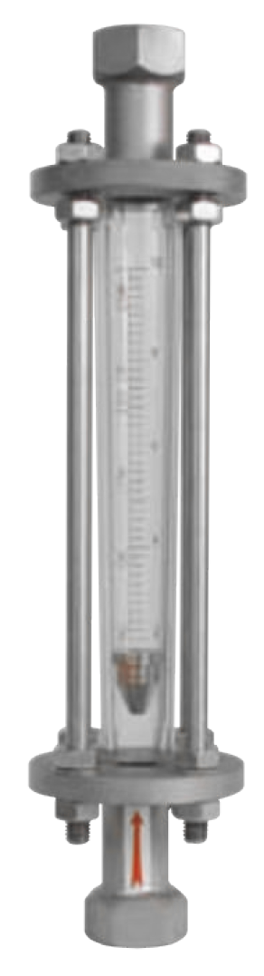 The rotameter’s operation is based on the variable area principle : Fluid raises a float in a tapered tube, increasing the area for passage of the fluid. The height of the float is directly proportional to the flow rate.
