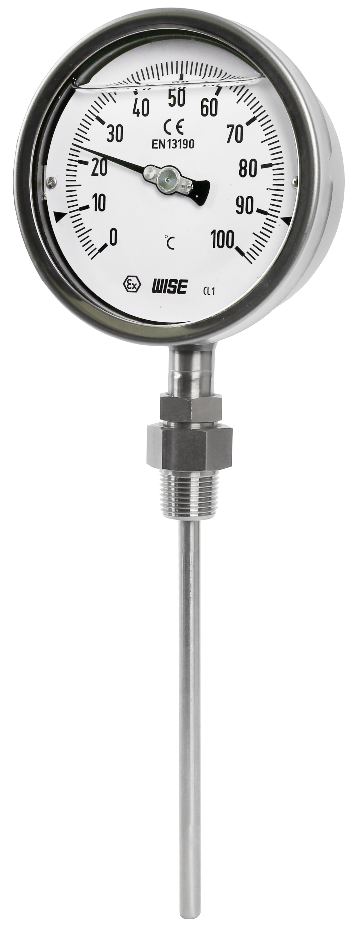 Liquid filled thermometer is used for measuring temperature of corrosive and non-corrosive fluid in all industries. It operates in aggressive and non-aggressive environment. Linear dials and temperature compensate line assure an accurate temperature indication at varying ambient conditions.